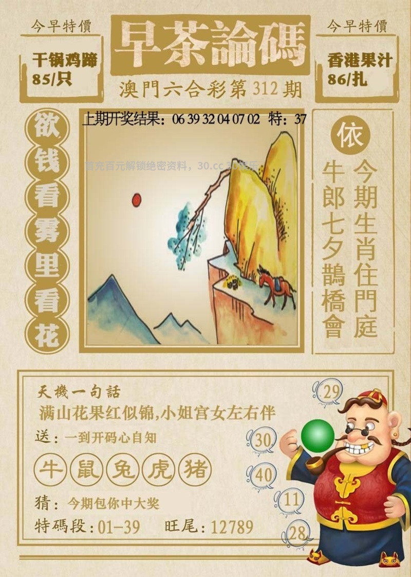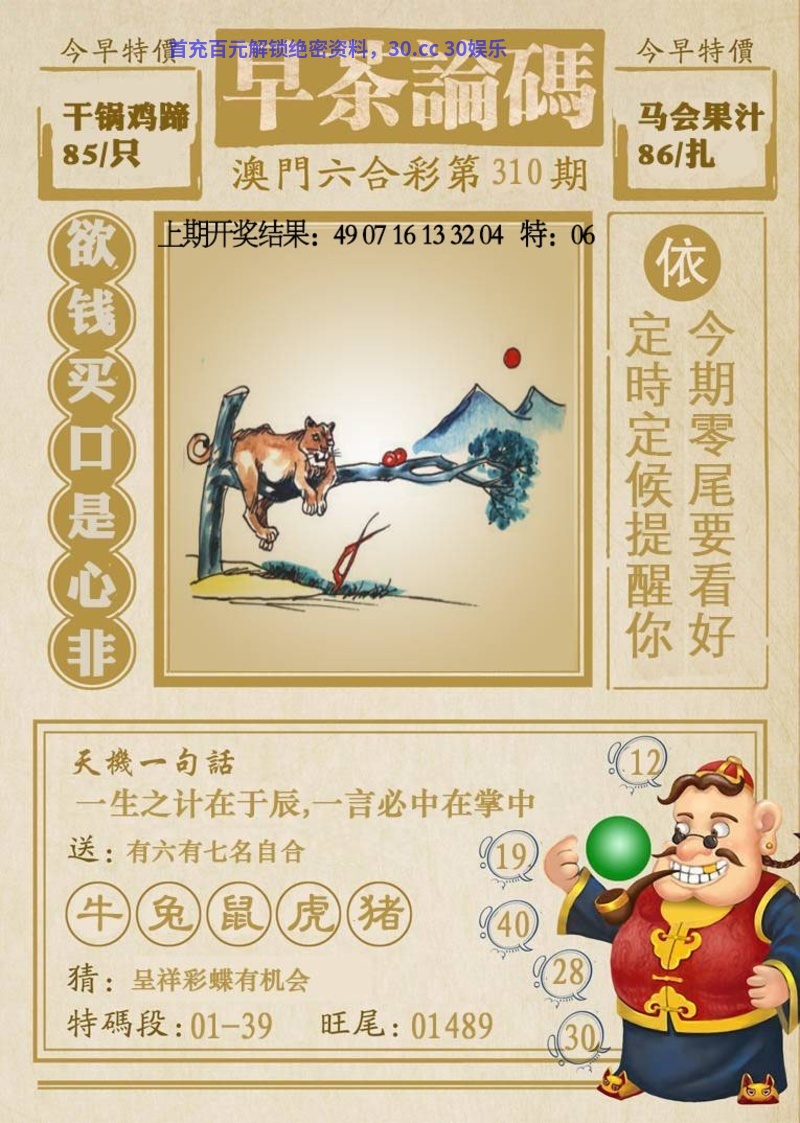 | 314期:内部1肖1码 | 314期:家野爆特码 |